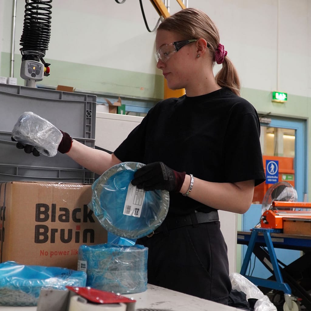 “Today I sent spare parts to Thailand for the first time,” says Veera Leskinen excitedly. She is working at Black Bruin’s Jyväskylä factory and seems to like it a lot. “Spare parts go all over the world, to Black Bruin’s distributor NAHI in North America, to South Africa, all over Europe and Asia… For deliveries in Europe, I personally take care of all transportation orders and freight documents, and outside the EU they are mainly managed by other Black Bruin team members. Sometimes the customers arrange transportation entirely themselves, and then we don’t deal with the transportation and freight documents,” Veera elaborates.