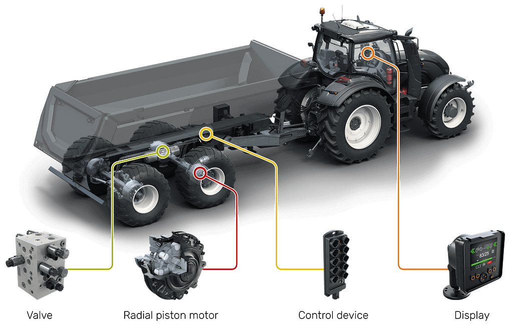 Extending the season or performing tasks in conditions that would normally halt work. The growing popularity of hydraulic wheel motors on trailers, slurry tankers, balers and many other kinds of implements working in forestry, agricultural and earthmoving conditions comes as no surprise.