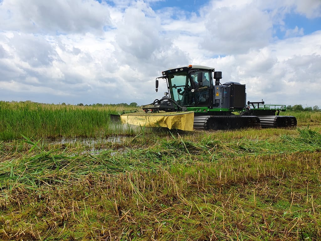 Mit einer modifizierten Pistenraupe kann pro 8-Stunden-Arbeitstag Grüngut aus etwa drei Hektar Feuchtgebiet geerntet werden. Mit der muR kann in der gleichen Zeit die doppelte Fläche, also 6-8 Hektar pro Tag, geerntet werden.Einer der größten Vorteile unter dem Gesichtspunkt der Kosteneffizienz und des Umweltschutzes ist, dass die muR einen Dieselmotor hat, der auch für HVO-Diesel geeignet ist. Dies ist eine wichtige Eigenschaft, die bei allen Anwendungen in der Naturpflege erforderlich ist.