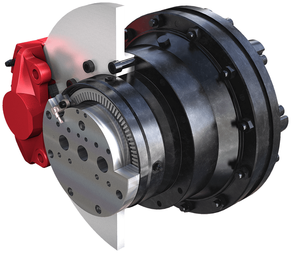 B200-series wheel motors are designed to generate tractive power on tractor-driven trailers and implements. Due to their unique freewheeling technology, the motor can freewheel without active hydraulics and work as a conventional wheel hub. The B200-series motors transmit up to 130 kW of power and 45 kNm of torque. The displacement ranges from 500 to 6300 ccm with a high load carrying capacity of even up to 280 kN. These motors are available with drum and caliper disc brakes and new speed sensors with direction and motion detection.