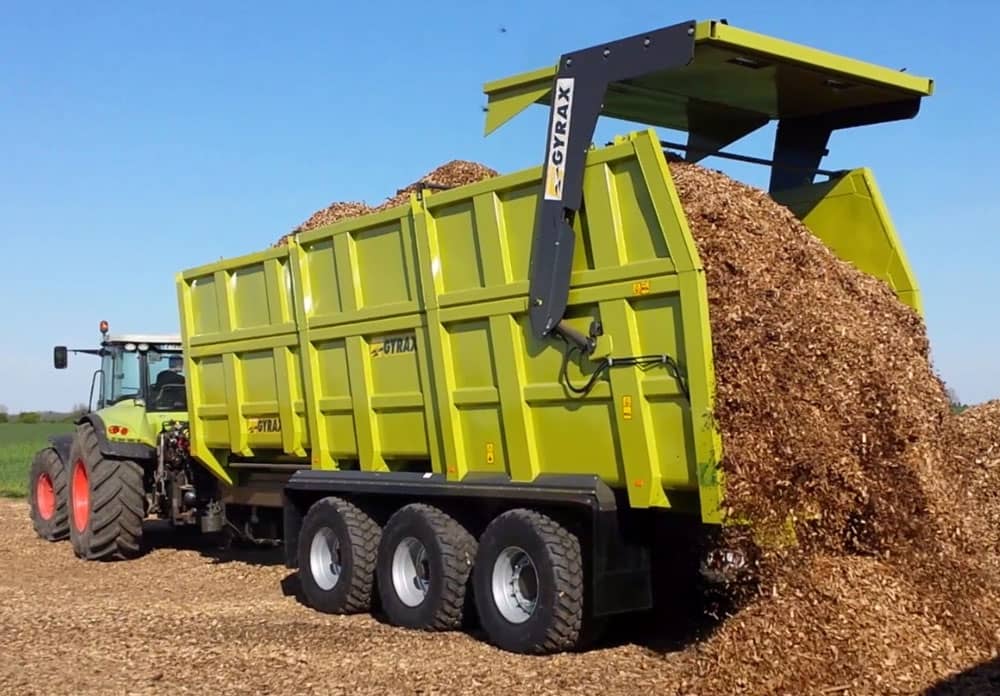 Cyril Berger purchased the hydraulic driven Gyrax trailer in 2015 and now has three seasons of experience using it. The trailer has a capacity of 30 cubic meters, which can be increased to 50 cubic meters when transporting light material. The trailer is ideal for transporting crops, silage, dry manure and woodchips. One of the trailer’s three Monroc axles is equipped with hydraulic drive manufactured by Black Bruin.