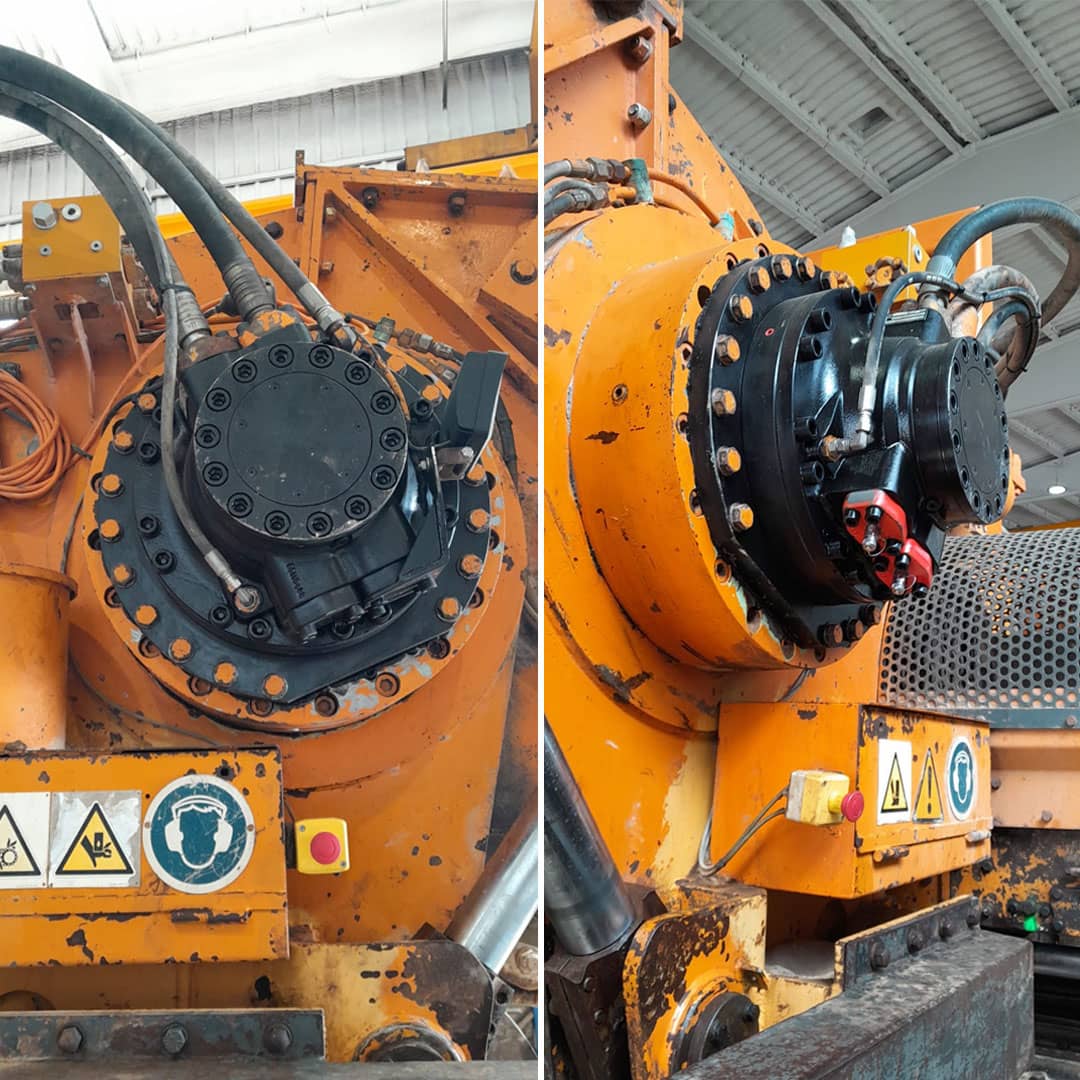 Lara Esteban of Interfluid Hidráulica, the Black Bruin distributor in Spain, has more to say about how Calaf and Black Bruin found each other: “I had been talking about Black Bruin motors to Calaf before and Joel had seen Black Bruin wheel motors in action on a farm, but the arrival of the X-series really got them interested. Calaf wanted to learn more about this compact and cost-efficient alternative and see it working in their chain trencher.” The compactness, of course, is the result of the direct drive concept needing no gearbox between the motor and the shaft it is driving. The Black Bruin X-series further features a patent-pending structure in which the wear-resistant piston design and large hydraulic fluid channels are utilized in a compact frame size. This enables improved fluid distribution with less pressure and fluid speed reduction. Simply: a small motor packed with power.